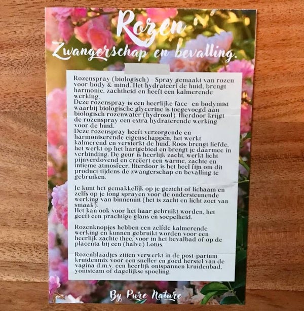 Rozenspray (biologische ingrediënten) 100ml – Spray gemaakt van rozen voor body & mind. Het hydrateert de huid, brengt harmonie, zachtheid en heeft een kalmerende werking.