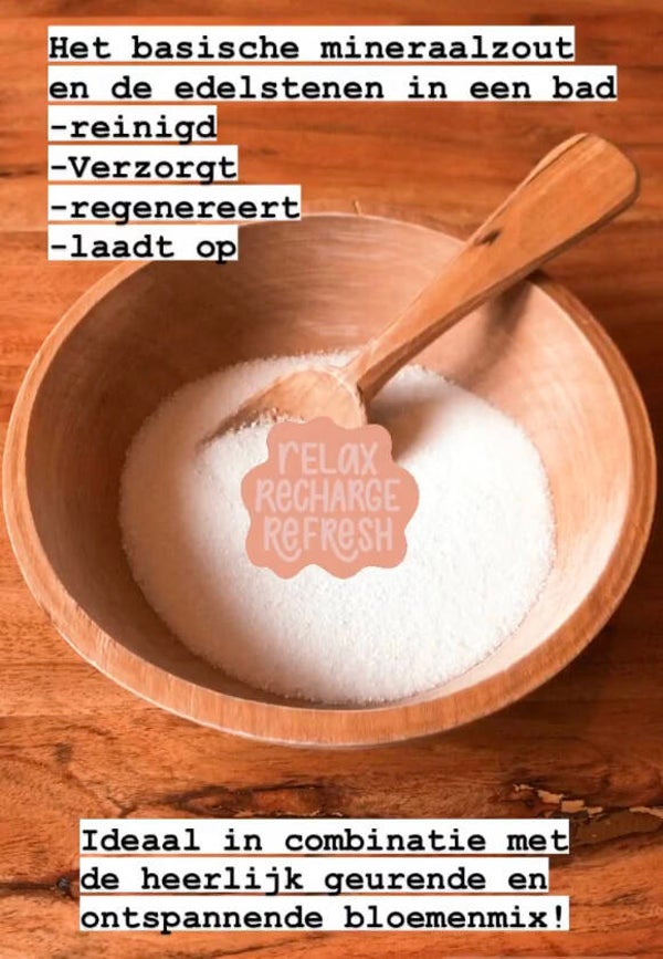 Het basische zeezout met de fijngemalen edelstenen verzorgt, reinigt, regenereert de huid en laad je weer op. De heerlijke subtiele geur van de bloemen zorgt voor extra ontspanning voor lichaam en geest!