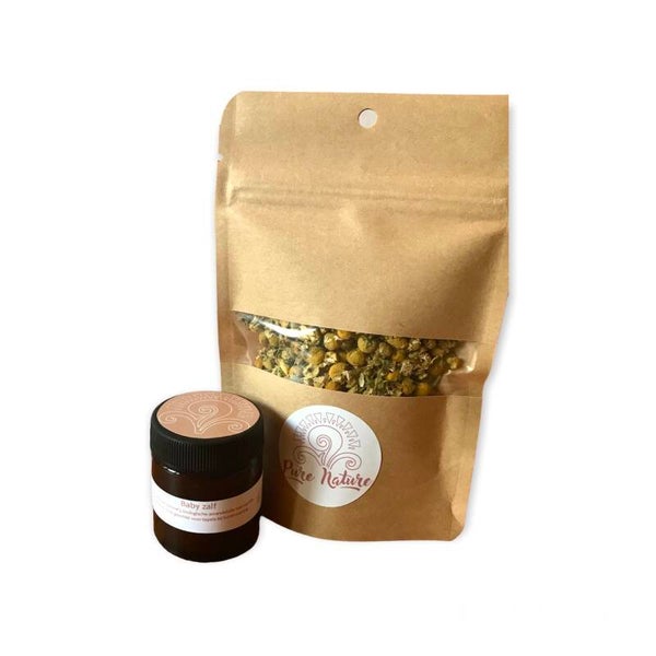 De eigengemaakte kamilleolie verwerk ik in de baby ‘wonder’ zalf en werkt zeer helend voor de kwetsbare babyhuid.